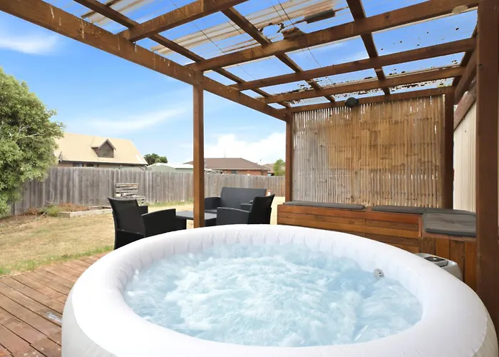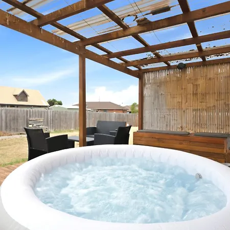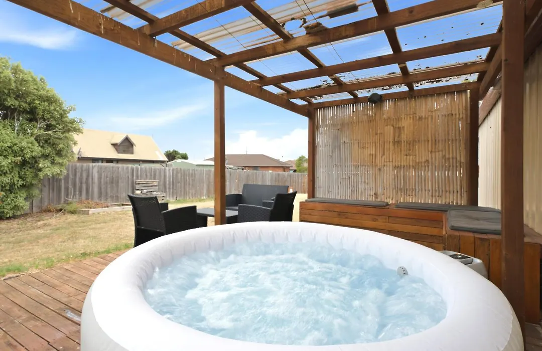 This Sorell accommodation comes with a bathroom with a hot tub.